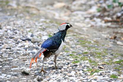 白腹锦鸡为典型的林栖雉类。栖息于常绿阔叶林、针阔混交林、针叶林及落叶林中,喜在山沟活动,所以在云南被当地人称为“箐鸡”。非繁殖季节多十余只结群活动。主要以植物的茎、叶、花、果及种籽为食,也吃部分昆虫。巢十分简陋,营于地面,呈圆形或椭圆形的浅坑状。除低海拔的热带地区无分布记录外,几乎遍及云南各地,为留鸟。属国家Ⅱ级重点保护野生动物。