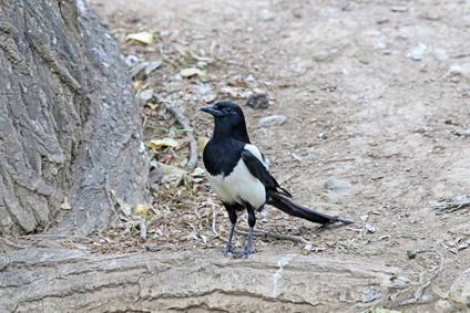 喜鹊栖息于平原、山地及居民区附近的树林和高大乔木上,常成对或结小群活动。杂食性,多在地面取食,食物主要为昆虫以及植物种子、谷物、杂草种子等。繁殖期为3~6月,以枯枝在高大乔木树冠顶部的枝杈上筑巢,每窝产卵5~8枚。广泛分布于云南各地,为常见留鸟。列入《国家保护的有益的或者有重要经济、科学研究价值的陆生野生动物名录》。