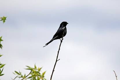 黑卷尾多栖于山麓或开阔的田野,常站在沿村的树冠或电线、木桩上。性凶猛,主要在空中捕食昆虫。鸣声嘹亮而多变,婉转似笛,还能模仿其他鸟的叫声。在高大树木的上部筑巢繁殖,每窝产卵3~4枚。云南各地都有分布,为常见留鸟、夏候鸟或旅鸟。列入《国家保护的有益的或者有重要经济、科学研究价值的陆生野生动物名录》。