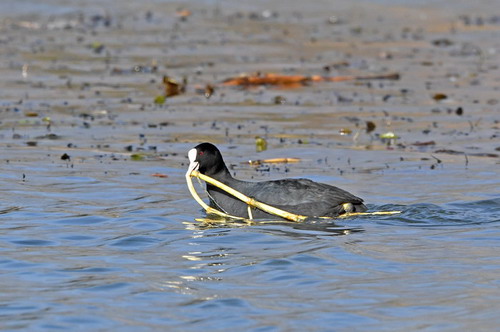 鉴别特征:体长约40厘米。全身黑色,仅嘴和额甲为白色;次级飞羽具白色羽缘,飞行时可见,趾具瓣蹼。