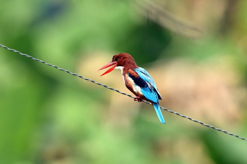 生态习性:栖息于河流、湖泊、水库、池塘、沼泽及田坝区附近,常单独活动,停息于靠近水域的电线、树枝上。食物除鱼、蟹以外,也捕食一些昆虫、蛙、蜥蜴和小蛇。繁殖期4~5月,在河溪堤岸或山坡沟边的土壁上用嘴挖掘洞穴作巢。每窝产卵4~8枚。