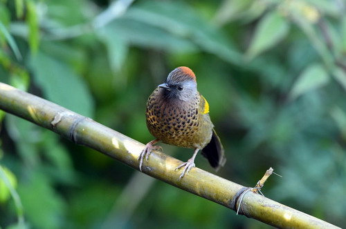 生态习性:栖息于热带和亚热带山地阔叶林中的灌木草丛、竹丛或山坡稀树之中。性胆怯。常结小群或与其它噪鹛鸟类混群活动,在林间地面落叶中觅食昆虫,也啄食果实和草籽。繁殖期2~8月,巢筑于树上枝叶丛、灌丛或竹丛间。每窝产卵2~4枚。