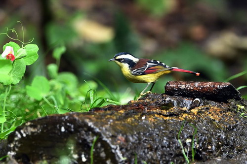 生态习性:栖息于沟谷阔叶林、灌丛中,成对或结群活动,有时也与其它鸟类混群,常在较高的树枝上和树冠上的枝叶间穿梭跳动。以昆虫等动物性食物为主,也取食部分植物性食物。