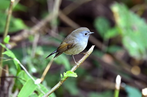 鉴别特征:全长约13厘米。雄鸟上体橄榄褐;额白色并延伸成短小的眉纹;头侧、颊、喉灰蓝色;颈侧和胸石板灰色,胸部中央具橙色斑块;尾黑色,外侧尾羽基部白色;下体余部灰白色。雌鸟较雄鸟体色稍淡,胸部色斑小或不具。