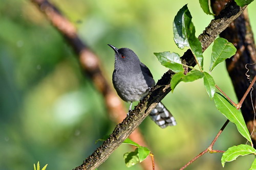 鉴别特征:全长约30cm。上体暗灰褐;翅暗褐,具明显的白色翅斑;尾长超过体长,尾羽表面褐色,具浅灰色端斑;颏、喉和胸淡灰褐;腹部和尾下覆羽淡灰色。两性相似。