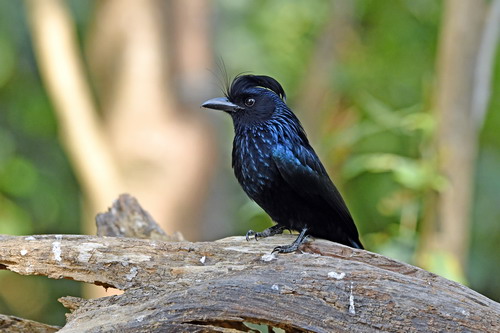 鉴别特征:全长约48.6~63。通体黑色;额羽发达,在头顶形成一簇向后弯曲的黑色羽冠;外侧一对尾羽的羽干显著延长而裸出,末端具向上卷曲的羽片,形成飘带状。两性相似。