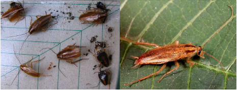生活习性:德国小蠊1 年可繁殖5~6 代,繁殖力极强。温度和食物影响德国
