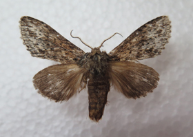 鉴别特征: 喙不发达;下唇须向前伸不过额。复眼无毛。雄蛾触角2/3栉齿形具毛簇,末端线形;雌蛾线形。头顶具毛簇。腹部第1-3节具毛簇。前翅灰褐色到暗褐色,翅面密布白色鳞片;前翅亚端线细锯齿状,多不连续.。