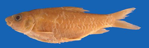 鉴别特征:体侧扁,背缘隆起。吻端圆钝。口亚下位,口裂伸至鼻孔的下方。上下唇在口角处相连,唇后沟在下唇中叶的背面相通。下唇中叶不发达,后端凭借,宽大于长。须2对,上颌须末端后伸达眼前缘之下方,口角须末端后伸可达眼后缘之下方。背鳍末根不分支鳍条粗壮,顶端分节。背鳍起点位于腹鳍起点的前上方。体鳞大,胸部鳞片稍小,侧线鳞29-30枚。侧线稍下弯,后伸入尾柄之正中。