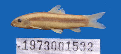 鉴别特征:体延长,侧扁。眼后头长约等于吻长。眼下刺后端仅达眼中央的垂直下方。体被细鳞,颊部无鳞。基色浅棕,沿背缘自吻端至尾鳍基有棕褐色纵带,其最大宽度约为1/2眼径;体侧各有同色纵带1条,起自吻端,沿侧线伸入尾柄中轴。