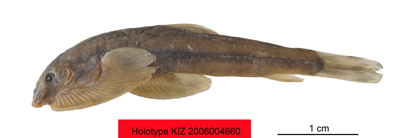 原始文献:陈自明, 黄艳飞, 杨君兴. 2009. 中国爬岩鳅属鱼类一新种记述 (鲤形目: 平鳍鳅科). 动物分类学报, 34(3):639-641.