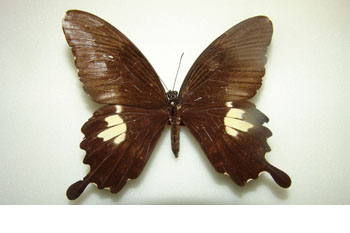 鉴别特征:前翅面中室端无斜列斑(与指名亚种P. nephelus nephelus全然不同)。与亚种P. nephelus raya近似,但后翅面第4,7翅室白斑明显缩小,尤其第7翅室白斑仅留痕迹;后翅黑白斑不伸到外缘,其外缘淡黄色新月纹明显增大。