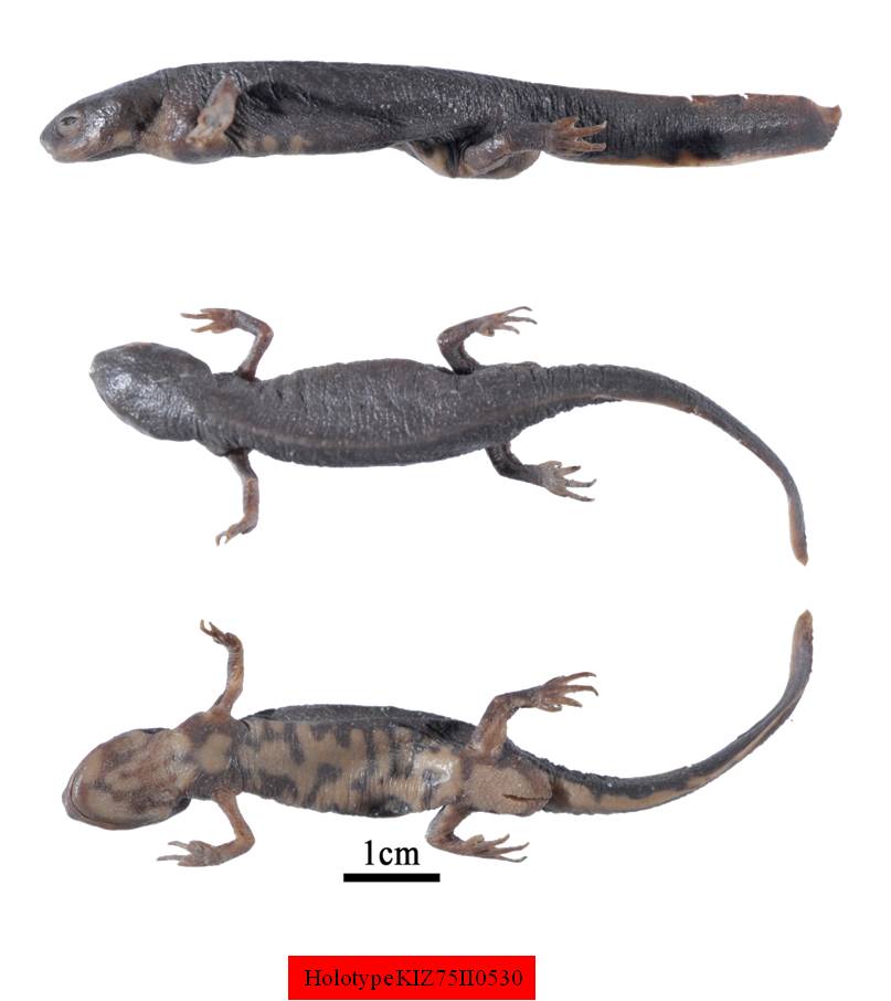 原始文献:杨大同. 云南蓝尾蝾螈一新亚种. 动物学研究,1983,4(2):124