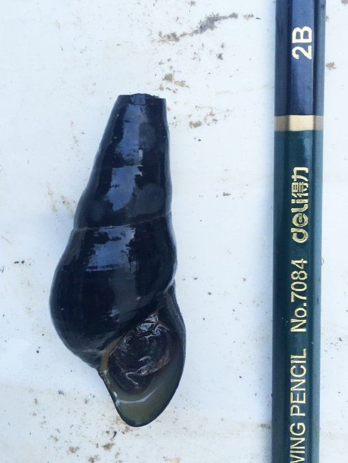 除此之外,外来种的入侵也是一个不容忽视的原因,福寿螺已经入侵了码市的深水,在深水中,作为一个非专业摸螺人,10分钟徒手摸到5个福寿螺,而在深水旁边的水田内,福寿螺的数量更是多的让人心惊。已经有研究表明,福寿螺会取食其它的幼螺及螺卵,因而,在物种保护的同时,也应该防范外来物种的入侵。当然,过度的捕获也是码市山螺数量急剧减少的一个重要原因。
