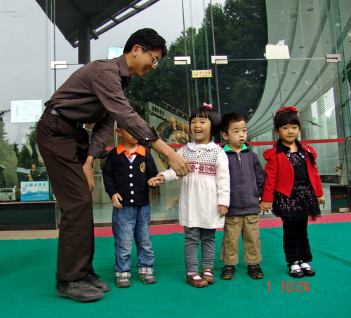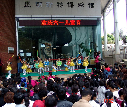 10点正,“六一儿童节”庆祝活动开幕式在博物馆门口准时启动。以二幼为主的700多名儿童、家长在老师的安排下,列队整齐,全园齐唱园歌,昆明市和五华区科协领导和动物博物馆馆长分别为孩子们颁发2010年以来历次比赛的获奖证书和博物馆的参观年卡,来宾们在孩子们的簇拥下愉快地观看了部分孩子生动活泼的表演节目。