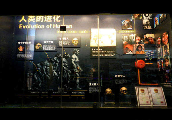 展览以时间为主线,讲述了动物世界从四足动物到人类的进化及扩散迁移、东亚人的起源等历史历程,同时呈现其文化与遗传的多样性,并辅以图片形式,结合标本模型,向观众直观展现晚中新世古猿、南方古猿、早期智人、晚期智人(现代人)、直立猿人头骨的差异,与博物馆序厅的动物进化树互相呼应,构成一幅包括人类历史的完整的动物进化图,为馆内固定展增添了一个新亮点。