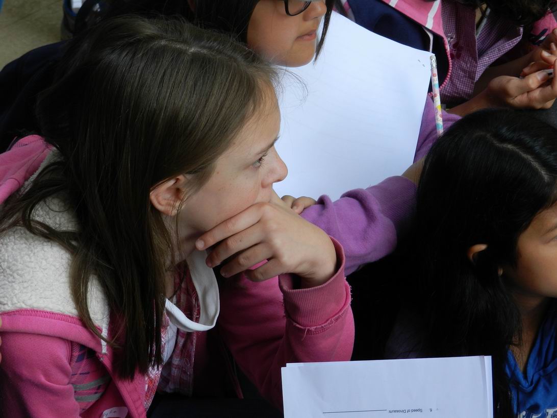 随后,在工作人员的带领下,57名师生相继走进博物馆。每个学生手上都有一份题目。接过一看,原来是老师之前专程过来考察后,为同学们准备的相关知识的介绍和互动题目。只见同学们三五成群,聚集在不同展品前,眉飞色舞地讲述他们知道的动物趣事。