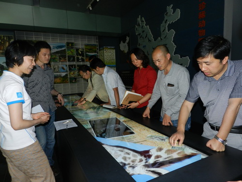 验收会上,张副馆长首先向大家介绍了项目整体情况,负责该施工项目的北京水魔方公司汇报了项目具体实施情况,并就相关设备进行了现场演示。本次询价采购的三套电子产品分别为“鱼水互动地面互动”、“人与自然墙面互动系统”及“多点触摸屏互动系统”。参加验收的成员分别对该项目的功能及使用需求、运行系统等进行了现场检查;同时,就后续操作人员培训、维保、软件产权等内容提出进一步完善实施的意见和建议。