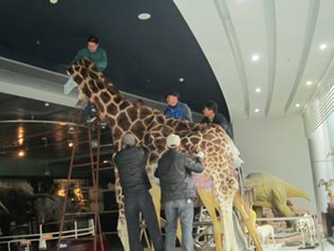 近期,出生在非洲,在昆明圆通山动物园度过一生的长颈鹿,在昆明动物博物馆又恢复了原来的雄姿,伸着长长的脖子,期盼着大家的光临! 这是昆明动物博物馆标本制作人员经过处理皮张,量身制作模型,缝皮等工作后的成果,历时近4个多月。今后,他的骨骼也将被制作为骨骼标本,在博物馆内相伴左右。
