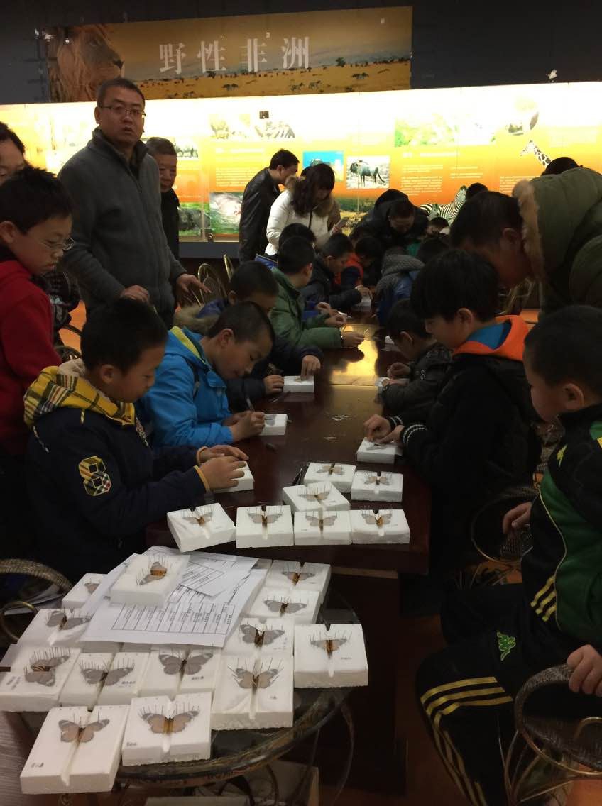 在讲解员对馆内的展品进行逐一介绍时,同学们专心听讲,还不忘认真做好笔记,为观后的作文找好题材。为了更进一步的了解昆虫,各同学在博物馆老师的培训、指导下还亲手制作了蝴蝶标本,观看了影片“微观世界”等,对提高学生的动手能力及普及昆虫科普知识起到一个很好的推动作用。