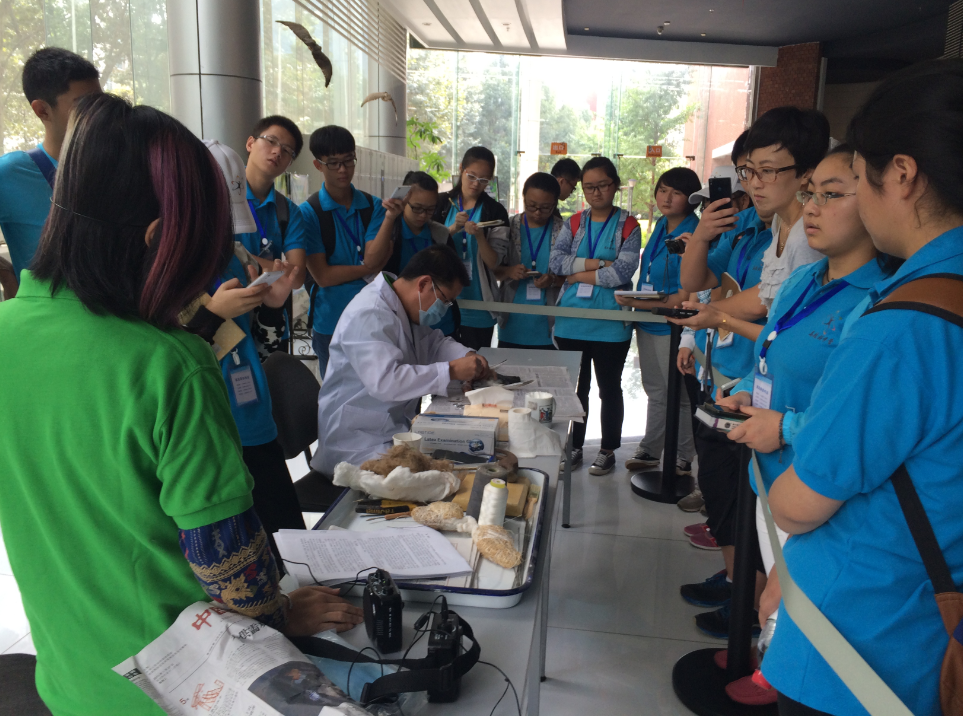 7月30日来自广西、云南、贵州三省的60多名高中生在昆明动物博物馆举办了动物学课题探究及成果汇报活动。昆明动物博物馆栩栩如生的标本,讲述着生物多样性和动物进化的故事。鸽子标本演示在讲解老师的鸟类知识介绍下步骤清晰的进行着,与此同时的蝴蝶标本制作组老师将营员分成四个小组,开展着昆虫标本制作项目,让每一位营员都获得了一个亲手制作的蝴蝶标本。