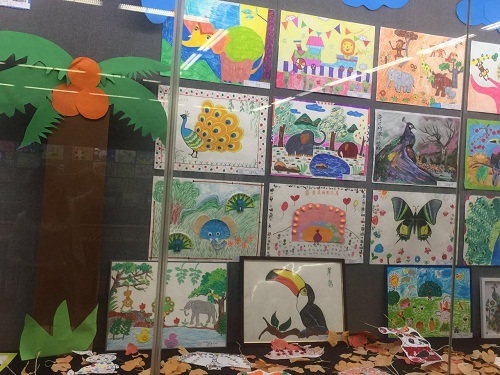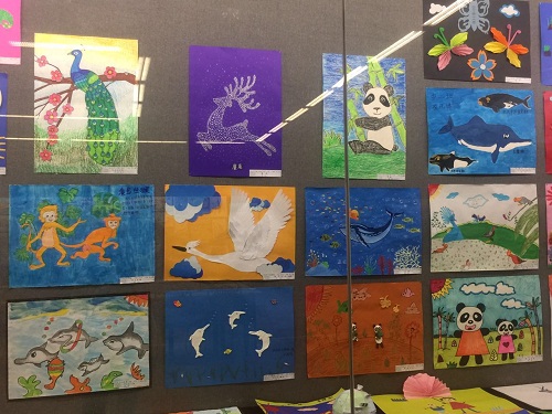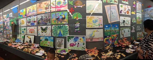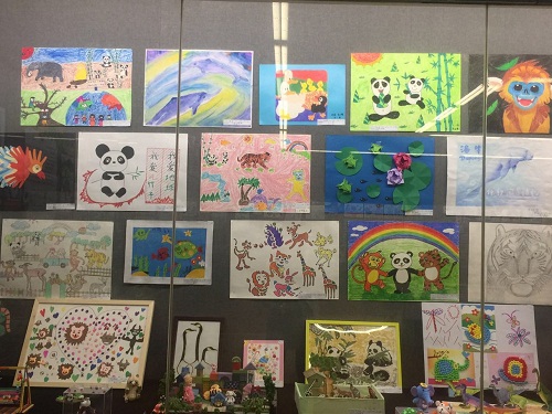 本次展览,在昆明市第二幼儿园老师的引导下,结合各年龄班幼儿的特点和主题进行了亲子创作,孩子们将自己对动物的认识和关爱用不同的方式表现在绘画和手工作品中,在他们的笔下,熊猫憨态可掬,栩栩如生;滇金丝猴一双大大的眼睛透出的是对大自然无限的热爱;黑颈鹤在蓝天和白云间自由翱翔;中班的宝贝们充分发挥废旧物品的作用,变废为宝,在他们的手中纸箱摇身一变成为了长颈鹿、绿孔雀;旧毛线通过一捆一扎使亚洲象完美“复活”;纸杯变成了大狮子、大老虎;小班的宝宝们用自己稚嫩的双手,运用多种手工材料进行创作,将自己对大自然的热爱跃然纸上,树叶将凹甲陆龟的背装饰得生动有趣;彩色纽扣成为了小鸟的羽毛;彩泥描绘出了一幅人与动物和谐相处的美景……一幅幅精美的作品通过他们所赋予动物的“人性”关爱,显示了孩子们认识动物的独特视角和创造力,全园的孩子们还发出了“让我们从现在做起,从自己做起,保护动物,使世界变得更美好”的共同倡议。