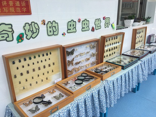 本次科技节活动为期半个月,在昆明市第二幼儿园展出,主要展出了昆虫标本、创意民居搭建、植物扎染、绘画等别具特色的作品和一批科学探索发现设备。昆明动物博物馆积极参与,将百余种不同种类的节肢动物标本送展到市二幼,在“动物科学走廊”和“昆虫教室” 两大特色科普环境展出,仿佛进入了一个“奇妙的动物世界”。孩子们在老师有序的组织下走进了科学长廊,眼前的神奇动物世界深深地吸引着他们一双双探寻的目光,孩子们饶有兴趣地拿着放大镜,观察蝴蝶的触角和美丽的鳞片、甲虫的壳是硬的还是软的、数数蜈蚣到底有多少条腿……这次不但展出了蝴蝶、甲虫标本,还有蜈蚣、马陆、蝎子的标本,在老师的讲解下,孩子们对小动物更加充满了兴趣。