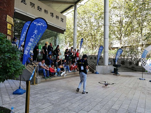 10月5日早上8点,在博物馆何桂武老师的带领下,云南领安科有限公司(以下简称:领安科技)一行6人,在博物馆外搭建了无人机体验大棚,无人机穿越门拱,手抛滑翔机穿越圆圈。并展示了公司自助研发的农用植保无人机,航拍训练无人机,室内穿越无人机,以及供小朋友体验带安全网格的盒子无人机。