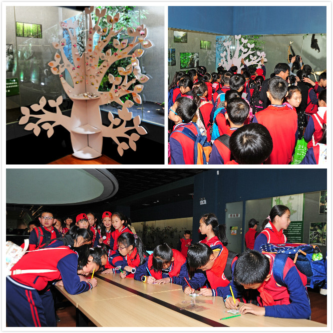 活动当天,曙光小学的师生、公众共1582人参与。在开幕式上,曙光小学的6位小小朗读者精心挑选了关于森林的经典美文进行朗读,用精美的文字表达真实的情感,用真实的情感读出文字背后的价值,以此来感染人、教育人,传递责任感。在博物馆的IMAX电影院,来自中国科学院昆明植物研究所的马文章博士以《“看不见”的森林》为题做科普讲座,从一类特殊的植物类群---苔藓植物为切入点,他表示站在微观的角度审视苔藓,可以看到平时被忽略掉的那片“看不见”的森林,但它却是数量丰富和极具保护价值的,希望能引起更多人关注和保护它们。在互动环节,学生们积极思考,踊跃提问,纷纷表示今后将以身作则,用实际行动来感染身边的人共同保护生态环境,保护生存家园;在心愿树下,大家根据所学、所见、所闻,将自己对森林的保护感想写在愿望卡片上贴于心愿树,为她披上最美的外衣;活动的主题宣传画,按照公平、公开、公正的原则,18份入围稿经专家、博物馆人员、媒体及大众评审,《生灵》以最具创意、最符合画意、最具“生态保护”内涵且得票数最高获胜,创作者李颖说:“森林与熊身体的颜色融为一体,“生灵”与“森林”同音,且息息相关。一草一木,一禽一兽,有生命的生物皆生灵,同呼吸,共命运”。此次活动还配合了 “生态保护”主题展览,展出内容聚焦森林资源最新调查结果和生态环境保护的前沿热点,通过图片、文字、标本、创意画、仿真环境等展现方式,集中体现生态保护体系建设在人居环境、森林资源保护管理改善方面取得的新进展、新成就。