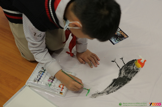 本次活动根据“云南珍稀动物概览”地图中,云南各地区分布的特有珍稀动物为内容,通过持续的、科学的、互动的宣教理念和参与方式,分为博物馆生物动线科普、有奖问答、多人绘制拼接地图三个环节,每人抽取进行分组后,在孙羽、杨劲松、陈泉燕三位老师的解说和引导下寻找标本,观察标本,记录特点。设置了问题与公众进行有奖问答互动,以此来巩固和加深对知识的理解,同学们热情高涨,积极踊跃,将活动推向了高潮。再根据动物形象特点观察,在二楼展区20米的绘画长布上进行现场绘画,知名画师禾三木指导,大家在老师的指导下,大胆想象创意,脑洞合拍,用他们自己的理解方式,抓住动物的特点,画出了色彩鲜艳、形态各异、栩栩如生的云南珍稀野生动物作品,展现出了良好的绘画功底。在整个活动任务中,用观察和记录来体会、表达与分享,理解自然界环环相扣的物种,思考物种和人的关系,人与自然的关系,成为一个生物多样性保护的践行者、倡导者和传播者。