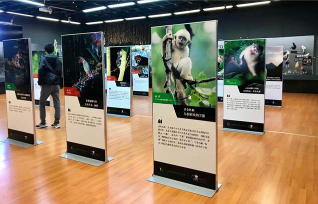 2019年,由云南省林业和草原局牵头,联合云南省绿色环境发展基金会、大自然保护协会(TNC)等13家单位发起成立了云南省首个野生动物保护网络—“滇金丝猴全境保护网络”,旨在推动滇金丝猴及栖息地保护,为中国的旗舰物种保护积累经验和树立典范。在网络成立一周年之际,共同举办了“遇见山中精灵”主题摄影展,围绕 “滇金丝猴、伴生物种、栖息地景观、社区人文和保护工作”四大板块,向社会征集并从中精选了15位摄影师的36幅作品,展示滇金丝猴栖息地的生物多样性、景观多样性和人文魅力。昆明动物博物馆作为“云南省生态文明教育基地”发挥积极作用,通过影展向公众宣传生态保护理念,提升公众对保护野生动物、人与自然和谐相处的认知度。