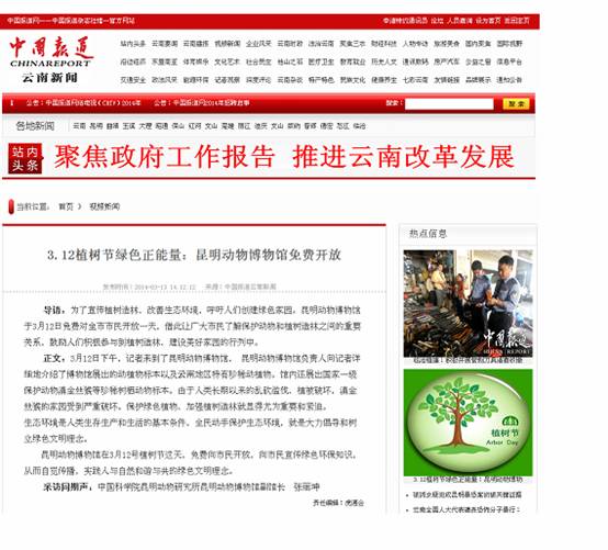 中国报道网——3.12植树节绿色正能量:昆明动物博物馆免费开放