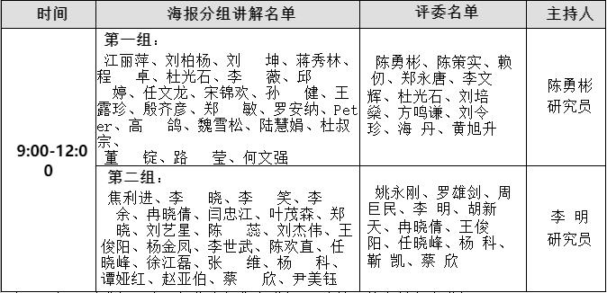注:两组同时进行评比,每位海报作者讲解3-5分钟,按名单顺序讲解。