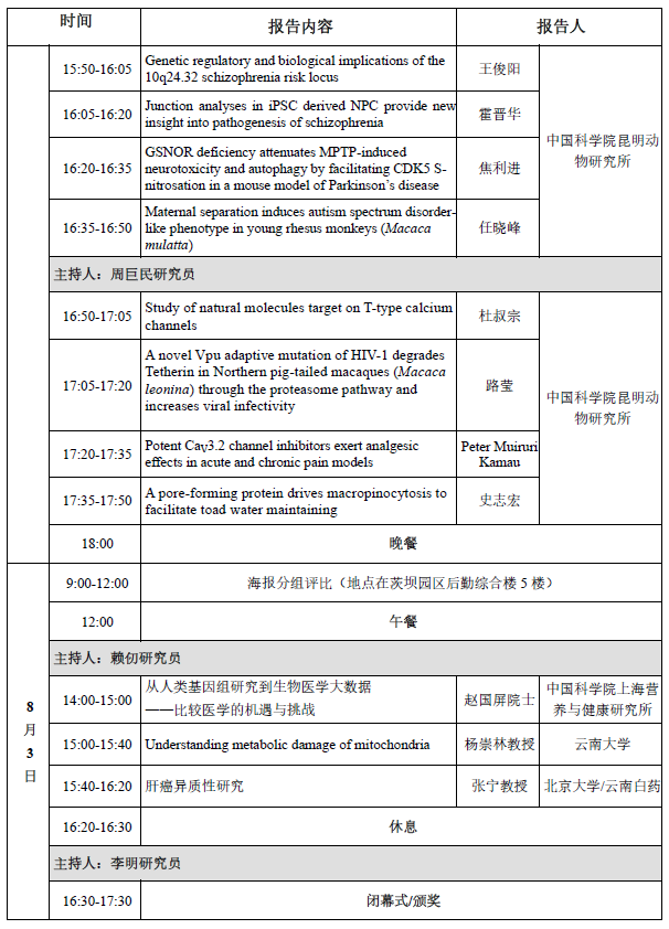 中国科学院动物模型与人类疾病机理重点实验室暨云南省活性多肽研究与利用重点实验室定于8月1-3日在茨坝园区举办2022学术年会,会议包括特邀专家报告、研究生报告和海报评比等环节。其中8月1日为外单位专家报到时间,本单位师生8月2-3日直接参加会议,诚邀各位感兴趣的师生参加,会议详情如下: