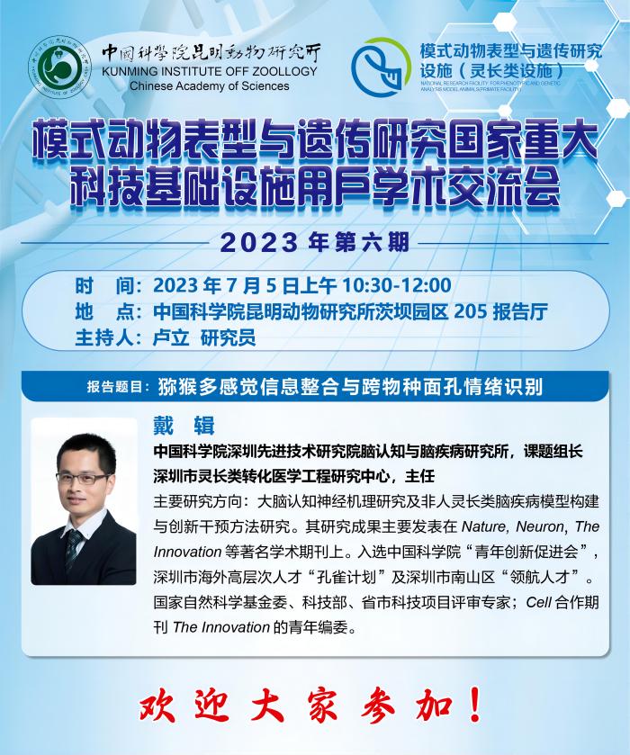 模式动物表型与遗传研究国家重大科技基础设施(灵长类设施)2023年第六期用户学术交流会