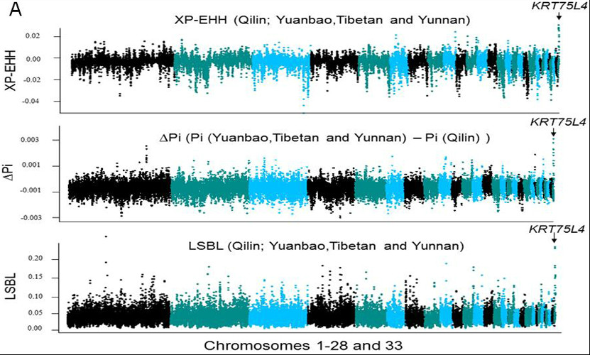 图2不同群体基因组学方法检测麒麟鸡群体中的选择信号