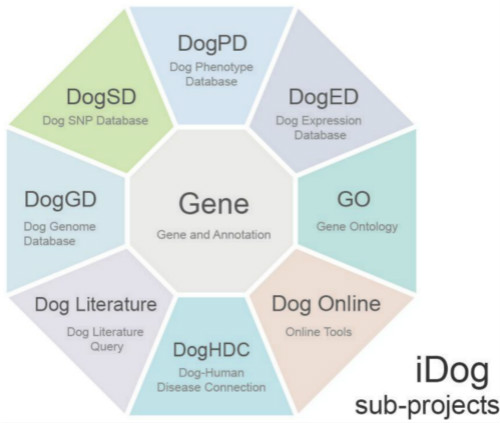 家犬毫无争议是人类最好的朋友之一,同时也是许多人类遗传病的基础研究模型。iDog 是第一个家犬与野生犬科动物整合性资源数据库,它不仅提供了丰富的组学数据,基因组拼接数据,基因表达谱数据,犬类疾病及相关表型信息,同时,iDog 数据库还整合了序列比对工具用于线上数据分析,以及基因组浏览器用于数据可视化。iDog的建立不仅有利于全球范围内犬科动物的研究,同时还为大量的爱狗人士提供了一个用户友好的界面查找相关宠物狗信息。