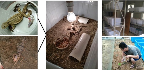 图2. 荒漠沙蜥及青海沙蜥室内繁殖体系建立(高伟在南京师范大学计翔课题组开展合作研究)