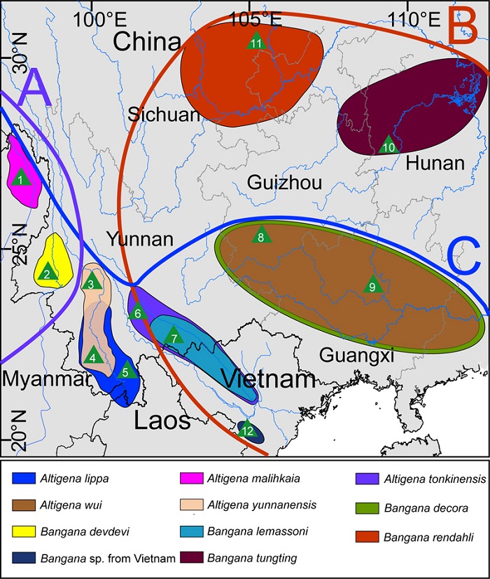 这一成果近期在线发表于国际动物学专业期刊Journal of Zoological Systematic and Evolutionary Research。本研究得到了国家自然科学基金(31201707)、中国科学院西部之光项目、中国科学院东南亚生物多样性研究中心(Y4ZK111B01)和中国科学院国际合作项目(GJHZ201317)的资助。