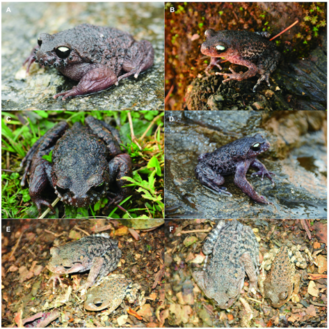 哀牢髭蟾(Vibrissaphora ailaonica)[Amphibiaweb(2019),Frost(2019)和中国两栖类(2019)将其归为Leptobrachium ailaonicum的同物异名]俗称“胡子蛙”、“深山角怪”,属两栖纲、无尾目、角蟾科,是中国特有种。该物种具有多个特化的表型,如繁殖季节时,性成熟的雄性哀牢髭蟾的上颚会长出角化的婚刺,繁殖季节结束时脱落。此外,一般情况下,两栖类物种雌性个体显著大于雄性,而哀牢髭蟾的雄性个体却显著大于雌性(体型性别二型性的逆转)。上颚的婚刺可能是性成熟个体争夺巢穴和交配机会的武器;而资源防御、一夫多妻制和雄性亲代照料等可能是雄性体型较大的原因。然而,这些形态差异背后的遗传机制目前仍不清楚。一个高质量的哀牢髭蟾的参考基因组将对研究角化刺和体型性别二型性逆转背后的遗传机制有重要价值。