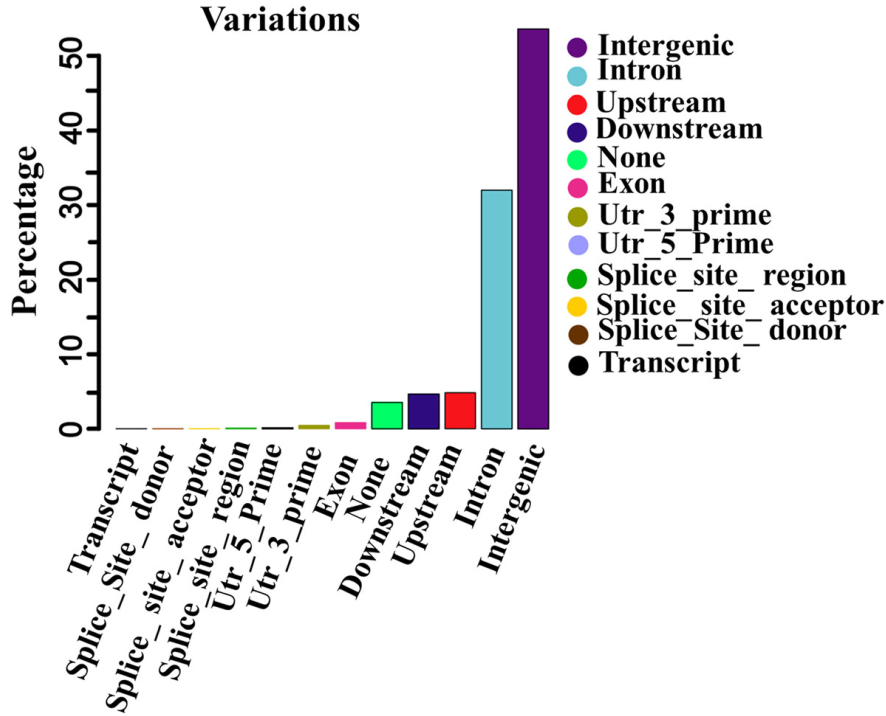 为了进一步研究狗驯化过程的遗传基础,研究团队对来自新月沃土东部的伊朗的3只狼和3只狗进行了全基因组测序,共鉴定到大约一千二百万个单核苷酸突变位点(SNPs),在灰狼中鉴定了一千万的SNPs,家犬中鉴定了近七百八十万个SNPs。此外,还鉴定了三百五十万个短片段插入缺失,其中在灰狼中鉴定了三百一十万个,家犬中鉴定了二百二十万个。同时,在伊朗的6个样品还发现了10,571个拷贝数变异区段,共154.65Mb,约占家犬基因组的6.41%。进一步分析表明家犬比灰狼积累了更多的有害突变。同时,灰狼比家犬在含子区域和基因间区积累了更高比例的突变,但是在编码区和3’-UTR则相反。鉴定的结构变异富集在嗅觉和免疫系统。该研究揭示了与灰狼相比,家犬在编码区积累了更多的有害突变。第一次解析了伊朗家犬和灰狼的变异图谱,进一步阐释了家犬驯化的遗传基础。