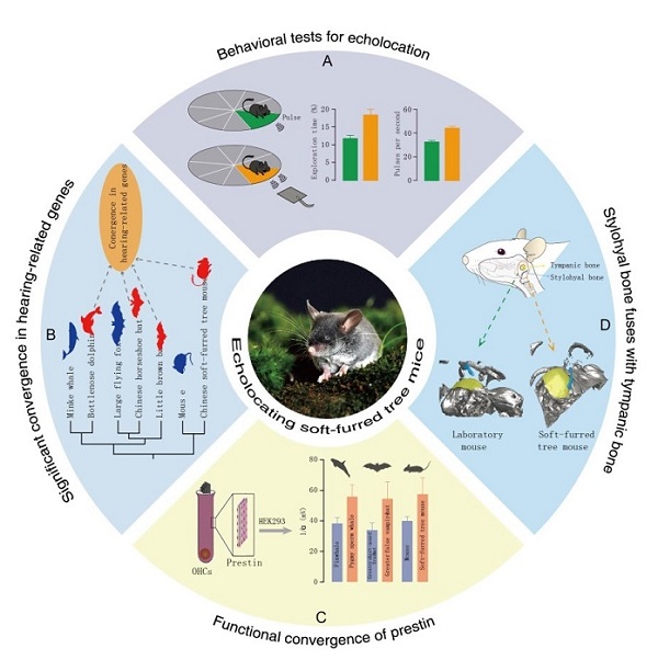 Fig.1 Multiple lines of evidence for echolocation in soft-furred tree mice (Typhlomys)