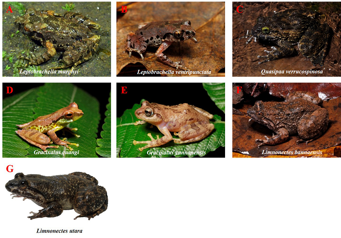 图1 发现的泰国两栖类新种和新纪录种(A为新种,B-G为新纪录种)