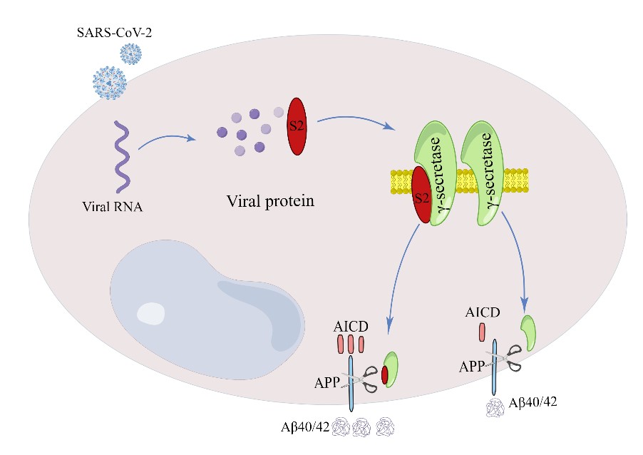 新冠病毒的刺突蛋白S2亚基调节γ-分泌酶活性,促进Aβ产生,加剧神经病变