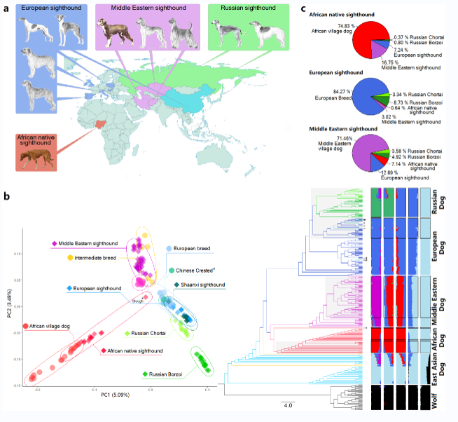 该研究最近以“Multiple origins and genomic basis of complex traits in sighthounds”为题被学术期刊Molecular Biology and Evolution接收(https://doi.org/10.1093/molbev/msad158)。黎武略 (中科院昆明动物所博士研究生) 、柳延虎 (中科院昆明动物所副研究员) 、李锦秀 (中科院昆明动物所助理研究员) 和丁梦婷 (中科院昆明动物所博士研究生) 为共同第一作者,张亚平院士、王国栋研究员、Peter Savolainen教授、Andrey Dmitrievich Poyarkov研究员、Ali Esmailizadeh教授为共同通讯作者。该研究得到春城高层次创新创业团队项目、国家自然科学基金、国家重点研发计划和中科院青促会等基金资助。