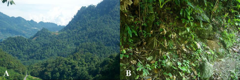 招龙棱蜥栖息地。A整体环境照,B微生境细节照