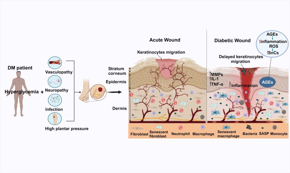 图2. 衰老细胞在糖尿病创面中的生物学作用 (Samarawickrama et al. Theranostics. 2024)