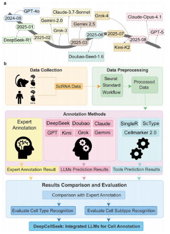 单细胞转录组数据分析中,细胞类型精准注释一直是瓶颈,传统工具在亚型识别上表现有限。大语言模型(LLM)为这一难题提供了新思路,但缺乏系统基准与标准化流程。为此,张超课题组构建了大规模基准测试,并配套发布开源工具DeepCellSeek。