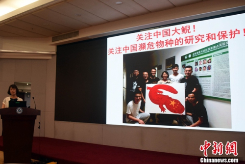 中科院昆明动物研究所、中科院动物进化与遗传前沿交叉卓越创新中心研究员车静呼吁关注中国大鲵保护。孙自法 摄