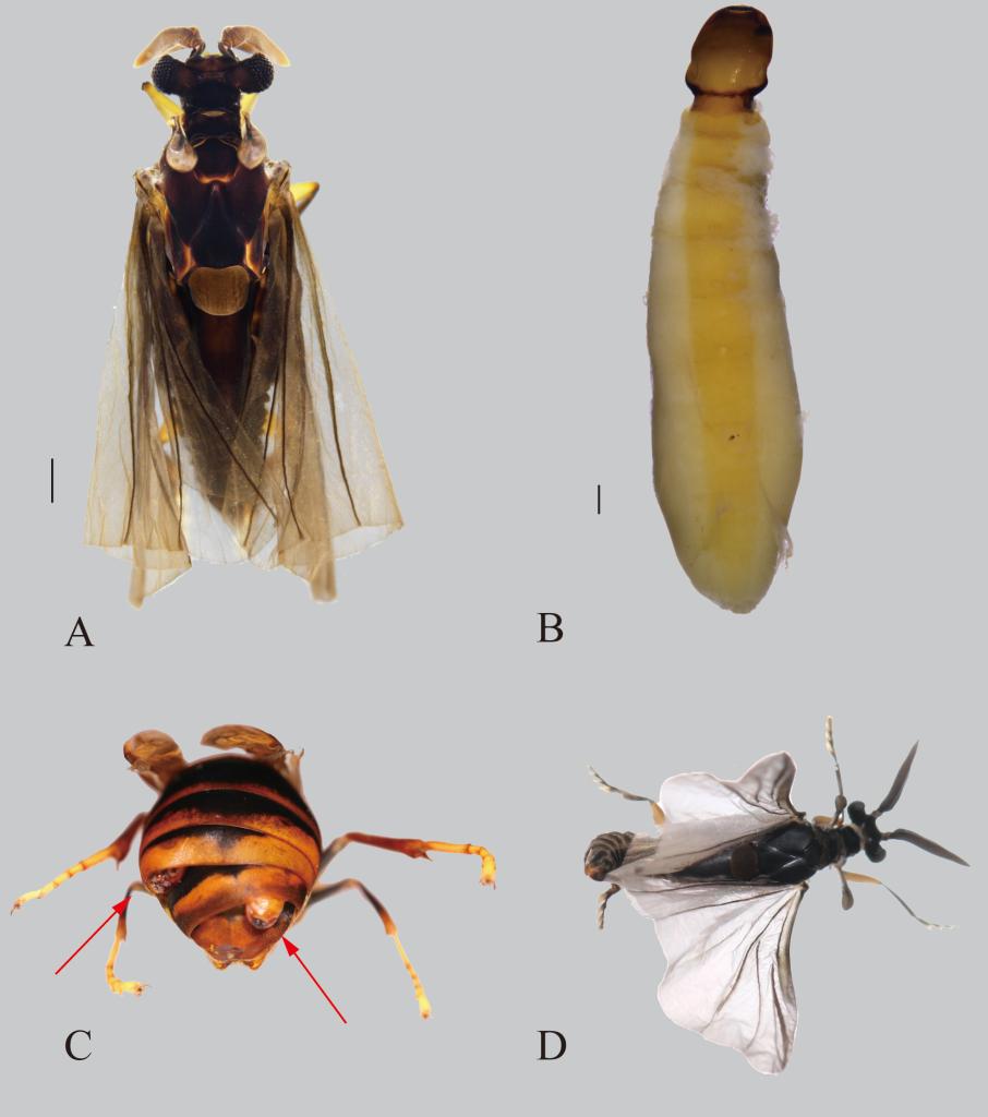 科研人员日前从栖息于高黎贡山的两种常见食用胡蜂黄脚胡蜂和黑盾胡蜂体内采集到许多不同虫态的捻翅虫,通过借助分子数据和形态观察,确定寄生于这两种胡蜂体内的捻翅虫为同一物种,经研究比对最终确定为胡蜂(虫扇 属)的一个新物种。